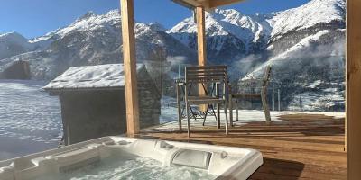 Dans le jacuzzi privatif, vous vous détendez sous le ciel étoilé. La chaleur enveloppante du sauna en tonneau prolonge ce moment de bien-être en toute tranquillité. Depuis la véranda, le panorama sur les montagnes vous invite à ralentir, à savourer l’instant, à partager des instants complices.