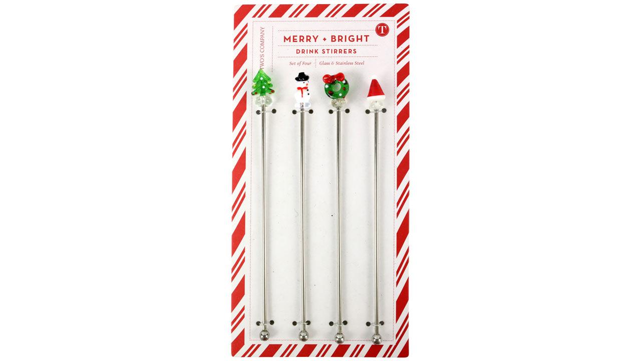 Donnez une touche spéciale à vos cocktails pendant les fêtes avec ce set de quatre bâtons mélangeurs aux couleurs de Noël !