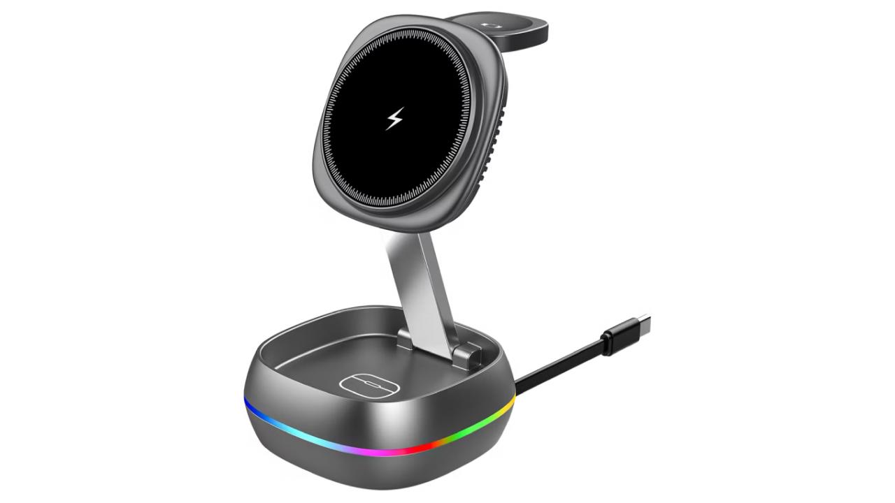 Découvrez une charge simplifiée au plus haut niveau avec cette élégante station de charge 3-en-1. Cette station magnétique combine trois fonctions en un seul appareil compact : elle charge votre smartphone, vos écouteurs et votre montre connectée, sans enchevêtrement de câbles. Que ce soit au bureau à domicile, dans la chambre ou en voyage, cette solution tout-en-un permet de charger vos appareils essentiels de manière centralisée, ordonnée et efficace.