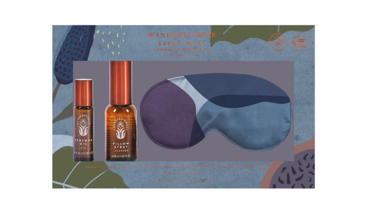 Détendez-vous, déconnectez-vous et glissez doucement dans le sommeil grâce au kit apaisant Wanderflower Sleep Well. Ce rituel bienfaisant comprend un spray pour oreiller parfumé à la lavande, un roll-on « Sleep Well » et un masque de sommeil luxueux, le tout magnifiquement conçu pour choyer vos sens et favoriser un sommeil profond et réparateur.