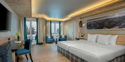 Une chambre double Deluxe spacieuse, alliant élégance et ambiance alpine, vous attend pour vous offrir des nuits merveilleusement reposantes. Après avoir pris possession de votre chambre, vous commencerez votre séjour bien mérité par un authentique menu à 4 plats de la région dans le restaurant de l'hôtel.