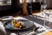 Le menu gastronomique à 4 plats comprend toujours de la viande ou du poisson en plat principal et peut être choisi sur place.