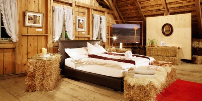 Grâce à ce bon, vous passerez une nuit romantique dans une étable de luxe. Laissez-vous tomber sur le grand lit double et abandonnez-vous au bruit de l'Emme !