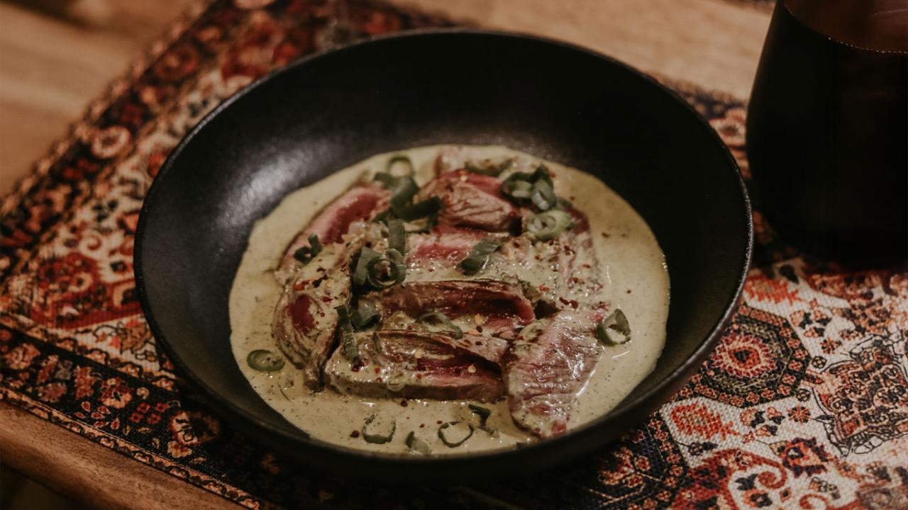 Le repas commence avec le Pkhali et une salade classique, avant de poursuivre avec le Soko, un mets riche en arômes. Vous savourez ensuite le Mtsvadi de porc grillé et le Chaqapuli, un plat emblématique aux notes fraîches et parfumées. Le repas s’achève sur un gâteau au miel, accompagné d’un verre de vin géorgien et d’un service de thé noir pour prolonger cette découverte gustative. Une manière idéale de vivre l’esprit convivial du Supra.