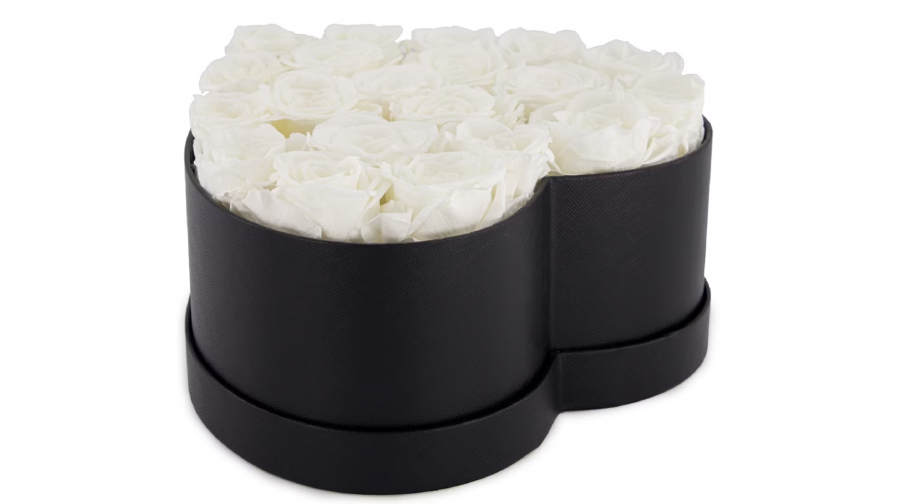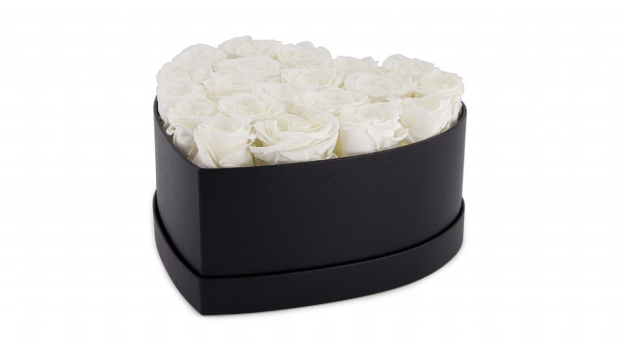 Offrez à ceux que vous aimez cette luxueuse flowerbox en forme de cœur garnie de 20 magnifiques roses éternelles. Cette superbe composition séduit non seulement par la beauté époustouflante de ses fleurs, mais aussi par leur longévité exceptionnelle. Chaque rose est soigneusement préservée pour conserver sa fraîcheur pendant des années, sans avoir besoin d'eau ni de soins.