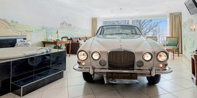 Avec ce bon, vos rêves d'automobile deviennent réalité ! Profitez d'un séjour unique à Merlischachen, dans une Junior Suite Jaguar, où le lit double est directement intégré à une Jaguar MK 10, millésime 1962. De plus, votre chambre dispose d'un grand jacuzzi dans la zone de séjour, d'une douche expérience, d'un sauna et de grandes baies vitrées offrant une vue spectaculaire sur le lac des Quatre-Cantons et les sommets.