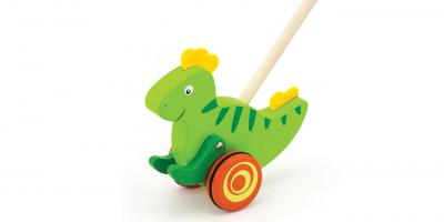Mignon dinosaure en bois avec un long manche pour le pousser.