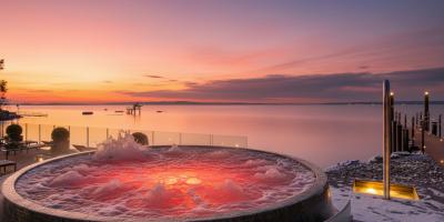 En compagnie de la personne de votre choix, accordez-vous une pause bien méritée sur les bords du lac de Constance. Vous découvrirez un vaste espace bien-être comprenant un jacuzzi, des saunas, plusieurs zones de détente et un accès direct au lac avec une zone privée de relaxation. Rechargez vos énergies et laissez votre esprit s'évader.