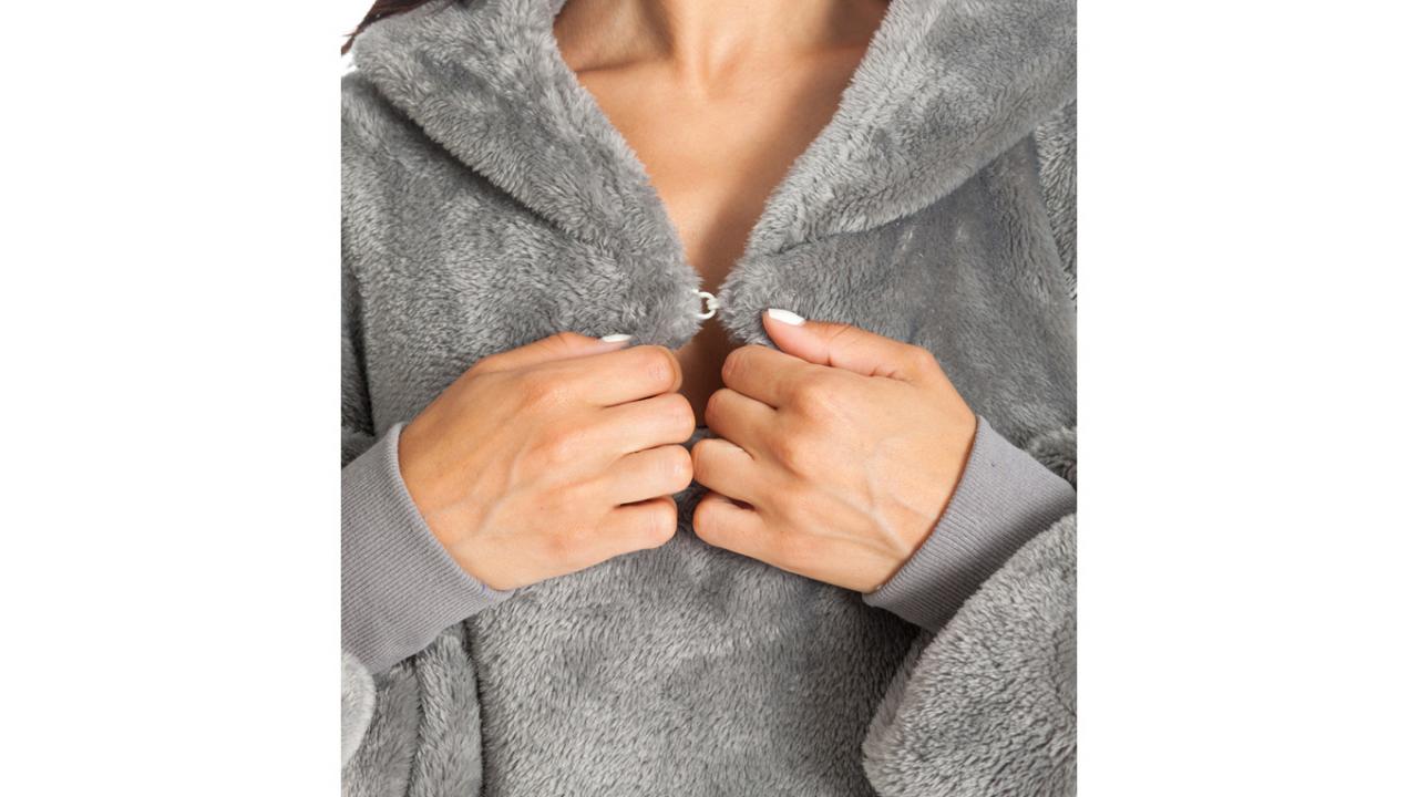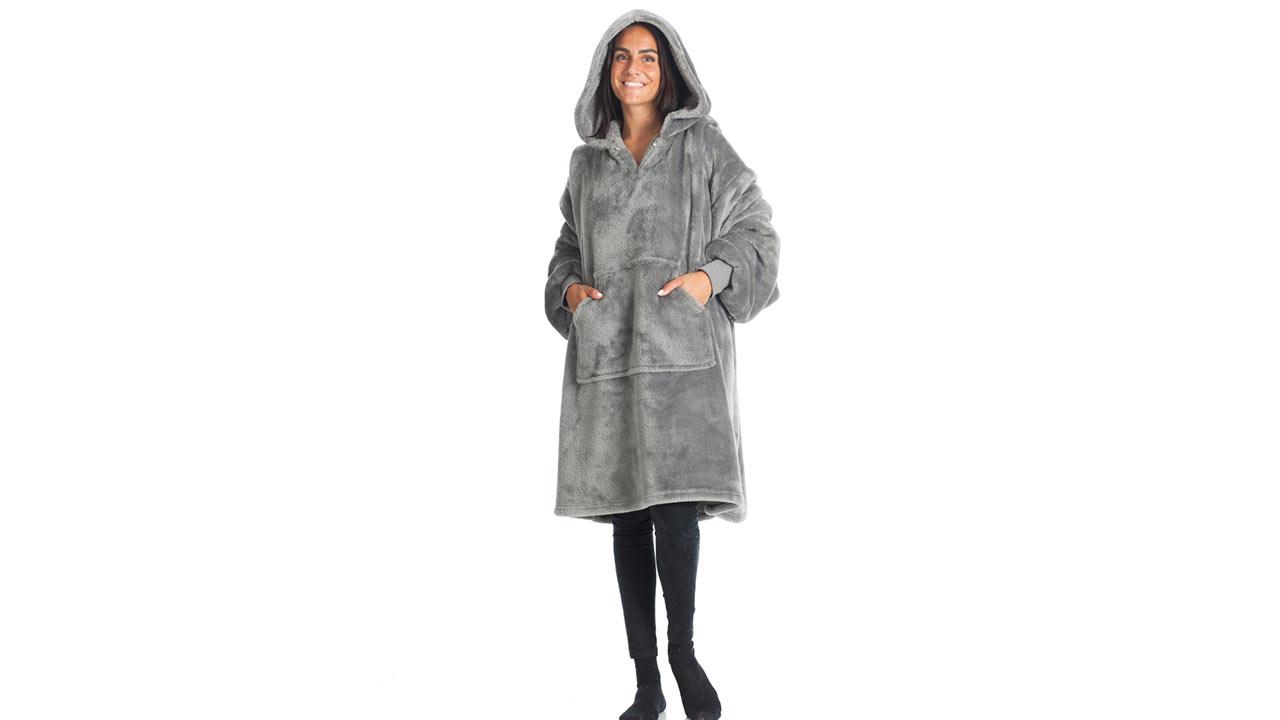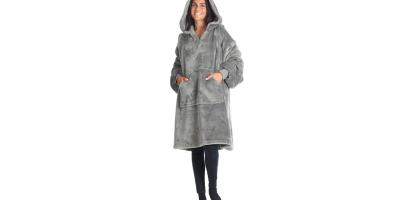 Nous connaissons tous quelqu'un qui aime se blottir sous des couvertures chaudes. C'est maintenant encore plus facile avec ce sweat à capuche ultra-confortable au look gris neutre. Enfilez-le, remontez la capuche, mettez vos mains dans les poches souples et il fait déjà chaud. Le cadeau idéal pour tous ceux qui veulent échapper un peu au froid hivernal.
