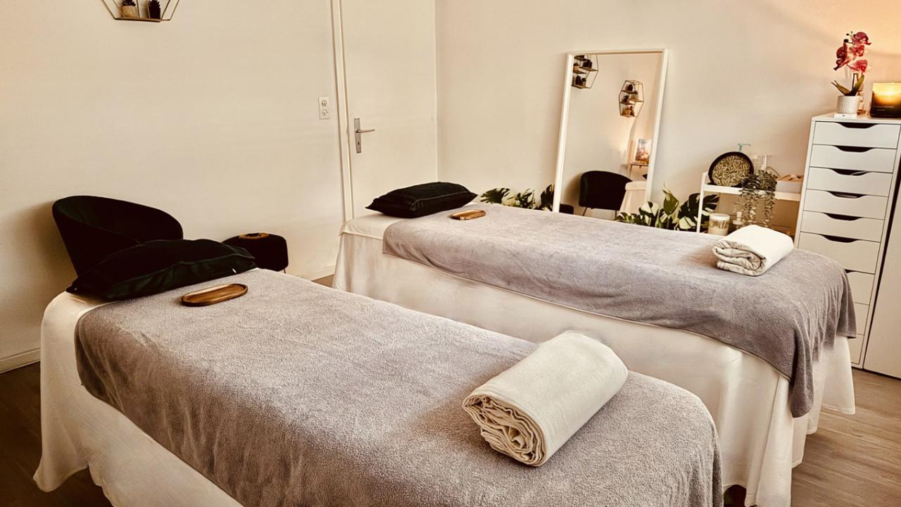 Vous êtes accueillis dans un espace intimiste, spécialement préparé pour ce moment à deux. Une cabine privative vous attend, avec deux tables côte à côte, une lumière douce et une atmosphère propice au lâcher-prise. Avant de commencer, chacun choisit le type de massage souhaité : relaxant, deep tissue, oriental ou suédois. Le soin s’adapte à vos besoins, qu’il s’agisse de soulager les tensions ou simplement de relâcher le corps.