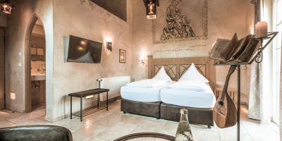 Offrez-vous un voyage dans le temps et redécouvrez les merveilles du Moyen-Âge tout en oubliant le stress quotidien. Cette épopée à travers les âges vous permettra de revenir aux sources et de réapprendre à apprécier les choses simples de la vie, comme une escapade en bonne compagnie. Vous séjournerez dans une chambre à thème ou de la tour et profiterez d'un copieux buffet de petit déjeuner.