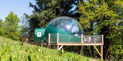 Amoureux de la nature, vivez une expérience incroyable, en toute saison. Elégamment perchée sur sa terrasse en bois, votre bulle offre une vue à 360 degrès sur la nature environnante, sapins et montagnes. Le calme, le chant des oiseaux, les chevreuils. Vous profiterez d’un lit confortable avec couette et couverture chauffante.