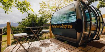 Sur la terrasse en bois située devant la cabine, vous pourrez admirer le coucher de soleil et regarder les Alpes se parer de mille et une couleurs. Dans votre charmante télécabine, vous vous endormirez paisiblement sous le scintillement des étoiles et laisserez les premiers rayons du soleil caresser votre peau au petit matin.