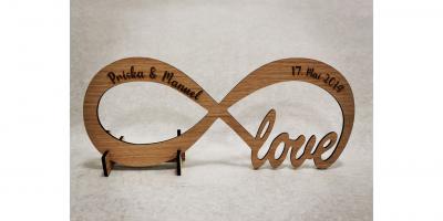 Le panneau décoratif en bois est un élément décoratif enchanteur, qui est personnalisé avec amour avec le nom et la date souhaités. Le symbole de l'infini en bois s'intègre parfaitement dans l'entrée, le salon, la chambre ou même dans le jardin et montrera votre amour infini l'un pour l'autre en tout lieu.