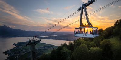 Au retour, vous pourrez déguster le plat principal et le dessert en survolant la vallée et, si la météo s’y prête, en admirant un merveilleux coucher de soleil. Vous terminerez cette expérience originale avec un verre de kirsch du Rigi.
