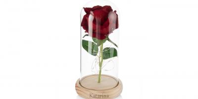 Cette rose rouge sous une cloche en verre avec LED et gravure personnalisée est un cadeau magique et élégant, parfait pour les occasions spéciales, mais aussi comme attention romantique.