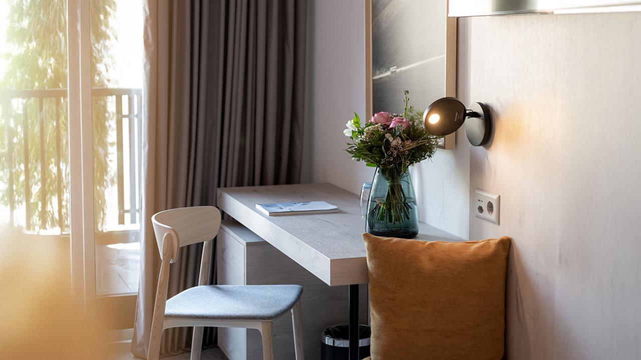 Découvrez une chambre Confort avec balcon où vous profitez d’un espace pensé pour vous offrir une véritable parenthèse. Dès votre arrivée, vous prenez le temps de vous installer, d’ouvrir les portes du balcon et de laisser entrer l’air frais de la montagne. L’atmosphère invite naturellement au ralentissement : vous vous accordez un moment pour souffler, pour vous recentrer et pour savourer le calme propre à Villars.