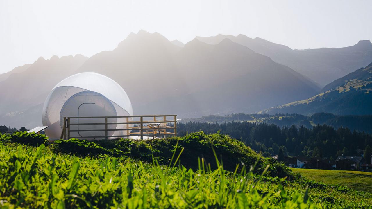 Grâce aux deux suites bulles voisines, cet endroit est parfait pour les couples, les familles ou les amis en quête d’une expérience unique – que ce soit lors de randonnées, de bains de soleil ou tout simplement en admirant la nature. Et au réveil ? La vue à travers la fenêtre panoramique plonge directement dans le cœur des Alpes – une journée qui ne pourrait mieux commencer.
