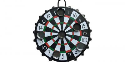 Ce qui sonne comme une idée d'alcoolique est en réalité très amusante : jouer aux fléchettes avec le sous-bock ! Les capsules magnétiques adhèrent parfaitement à la cible et garantissent une ambiance festive.