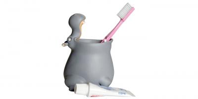 Il est facile de vous occupez de votre hippo de salle de bain, mais vous devez le nourrir très souvent. Son plat préféré ? Une brosse à dents. Sinon, l'hippopotame de bureau sera satisfait de vos crayons.