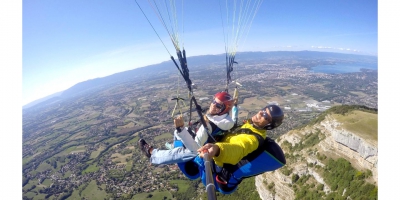 Les joies du parapente sont accessibles à tout un chacun en volant en biplace. Accompagné par un pilote professionnel et diplômé d’état, vous décollerez du mont Salève entre 1000 et 1300 mètres d'altitude avec comme magnifique panorama Genève, son lac et en arrière plan les Alpes, le Mont-Blanc et Annecy.