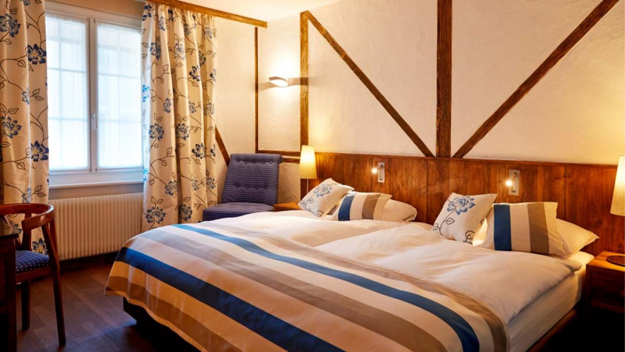 Les 52 chambres entièrement équipées de cet hôtel qui date du 16e siècle sont toutes décorées d'une fresque peinte par l'artiste local, Heinz Blum. Un petit plus pour les amateurs d'art.