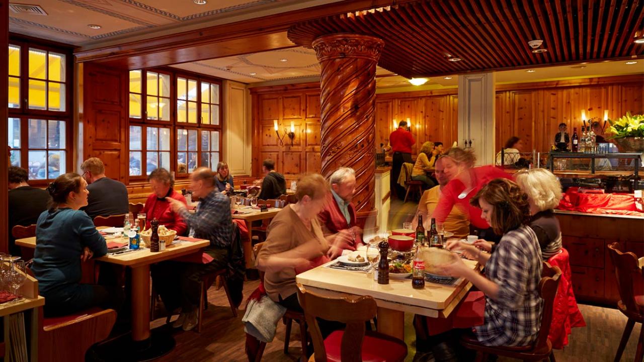 Ce bon cadeau comprend, outre l'hébergement, une soirée fondue et un copieux petit déjeuner au restaurant de l'hôtel «Swiss Chuchi» dont la carte est composée de spécialités suisses. Ce restaurant traditionnel à la décoration rustique veille a conservé son ambiance typique. Le bon cadeau est également une excellente idée pour les amateurs de gastronomie suisse.